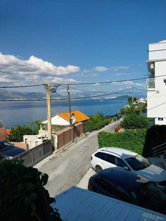 Offene Küche mit Wohn/Esszimmer, Meerblick, SAT-TV, WLAN und Klima.