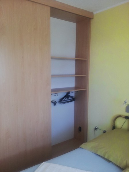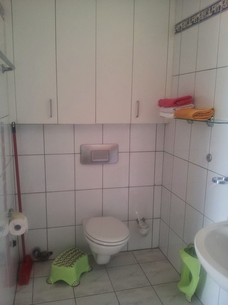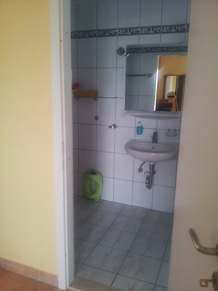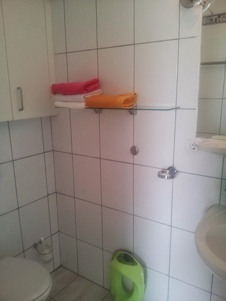 Dusche im Außenbereich, Bettwäsche, Fön, Waschmaschine.
