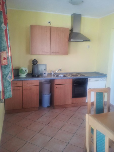 Küche, Geschirr, Küchenhandtücher, Elektroherd, Kochplatten: 4, Backröhre, Kühlschrank mit Gefrierfach, Filterkaffeemaschine, Wasserkocher, Toaster, Geschirrspülmaschine