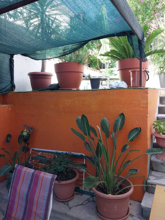 Es verfügt über einen großen Schlafraum, eine kleine separate Küche und ein Bad mit WC. Auch dieses Apartment hat WLAN und eine Klimaanlage sowie im Außenbereich eine Sitzgelegenheit und ein Sonnendeck. Liegestühle und einen Sonnenschirm sind ebenfalls vorhanden.