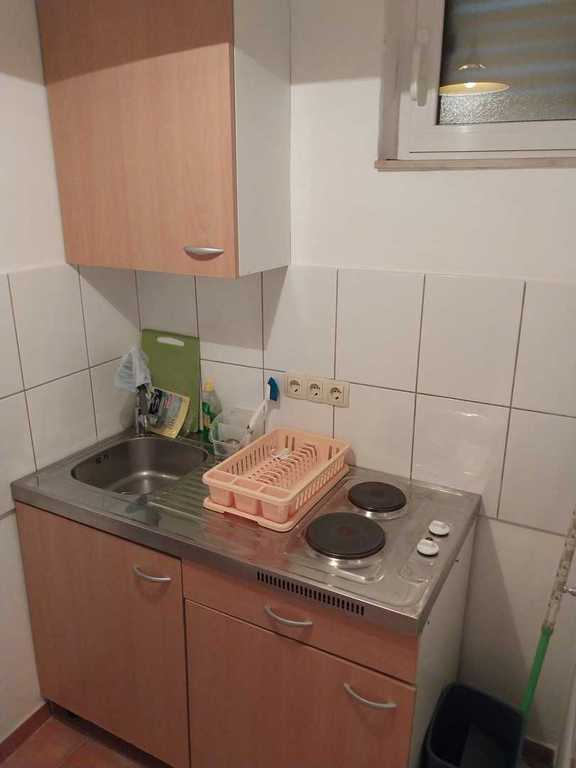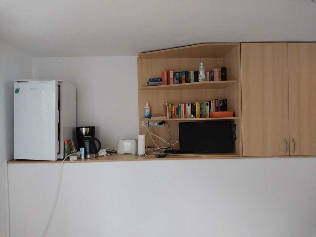 Kochnische, Küchenhandtücher, Elektroherd, Kochplatten: 2, Kühlschrank mit Gefrierfach, Filterkaffeemaschine, Wasserkocher, Toaster.